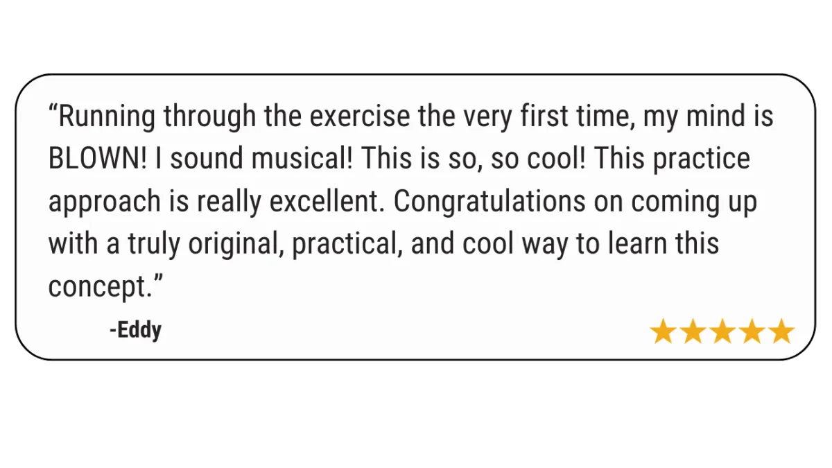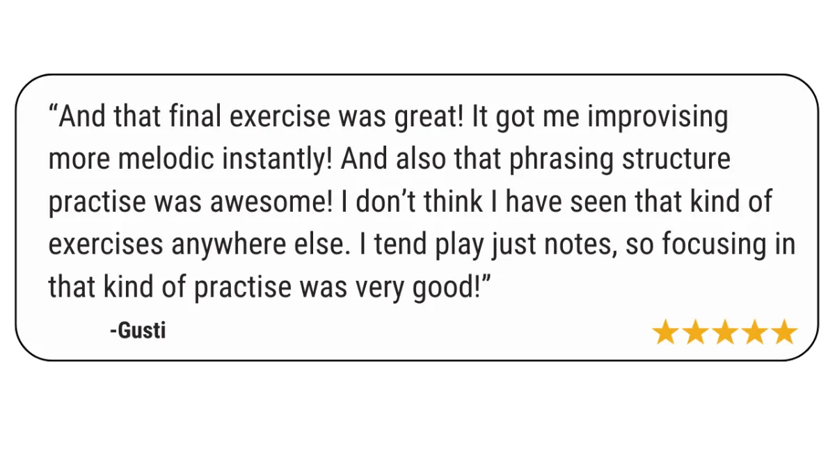 ONE proven path with ONE clear goal: to help you improvise melodic solos with pro-level phrasing over any chord progression. Every lesson builds on the last, so you’re never guessing what to do next.