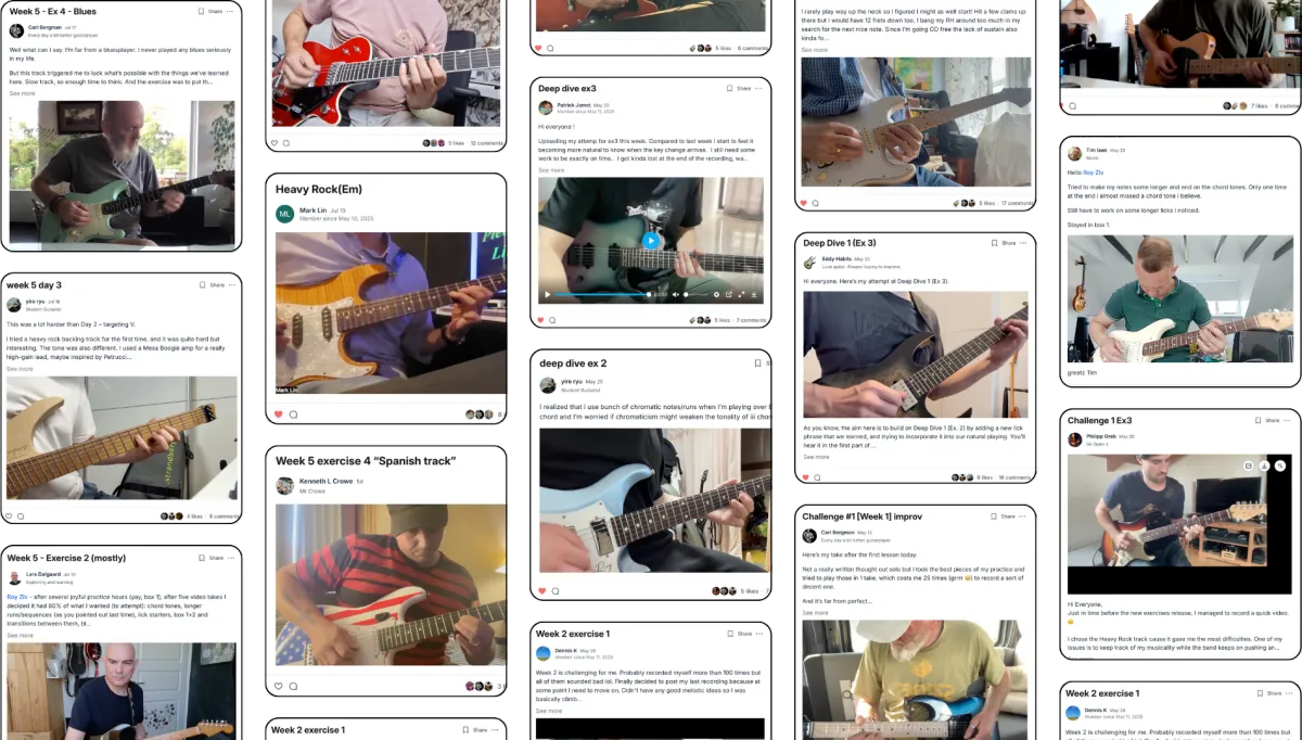 Members log in daily to share solos, exchange ideas, talk about gear, and help each other improve. You’ll never feel alone, and you might even make a few friends.